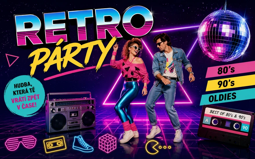 Přijďte si užít večer plný největších hitů 80. a 90. let, skvělé atmosféry a pořádné dávky nostalgie. Čeká vás hudba, která vás vrátí zpět v čase, taneční rytmy, retro výzdoba a zábava, na kterou jen tak nezapomenete. Oblečte svůj nejlepší retro outfit a dorazte si užít jedinečný večer plný barev, energie a osvědčených hitů.
